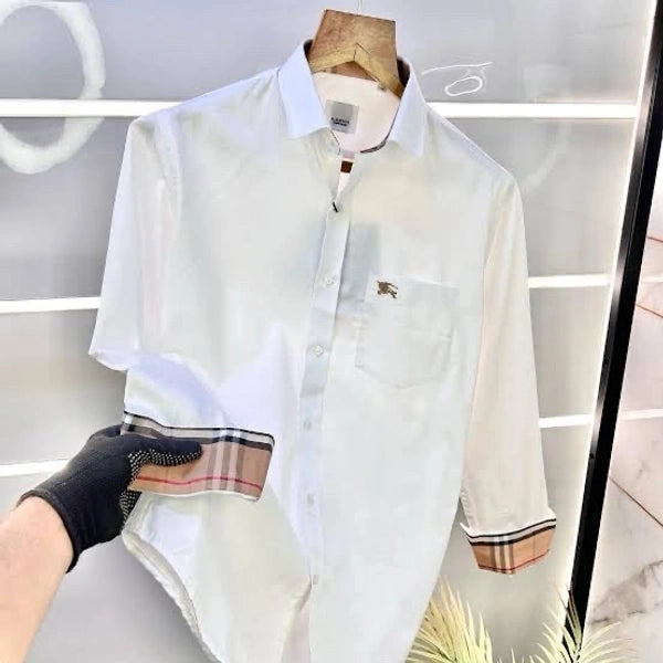 This shirt is made from high-grade soft cotton, offering exceptional comfort, breathability, and a crisp, polished look. The standout feature is the signature patterned cuff and inner placket detailing, giving the shirt a refined and fashionable edge — perfect for both casual and semi-formal occasions.